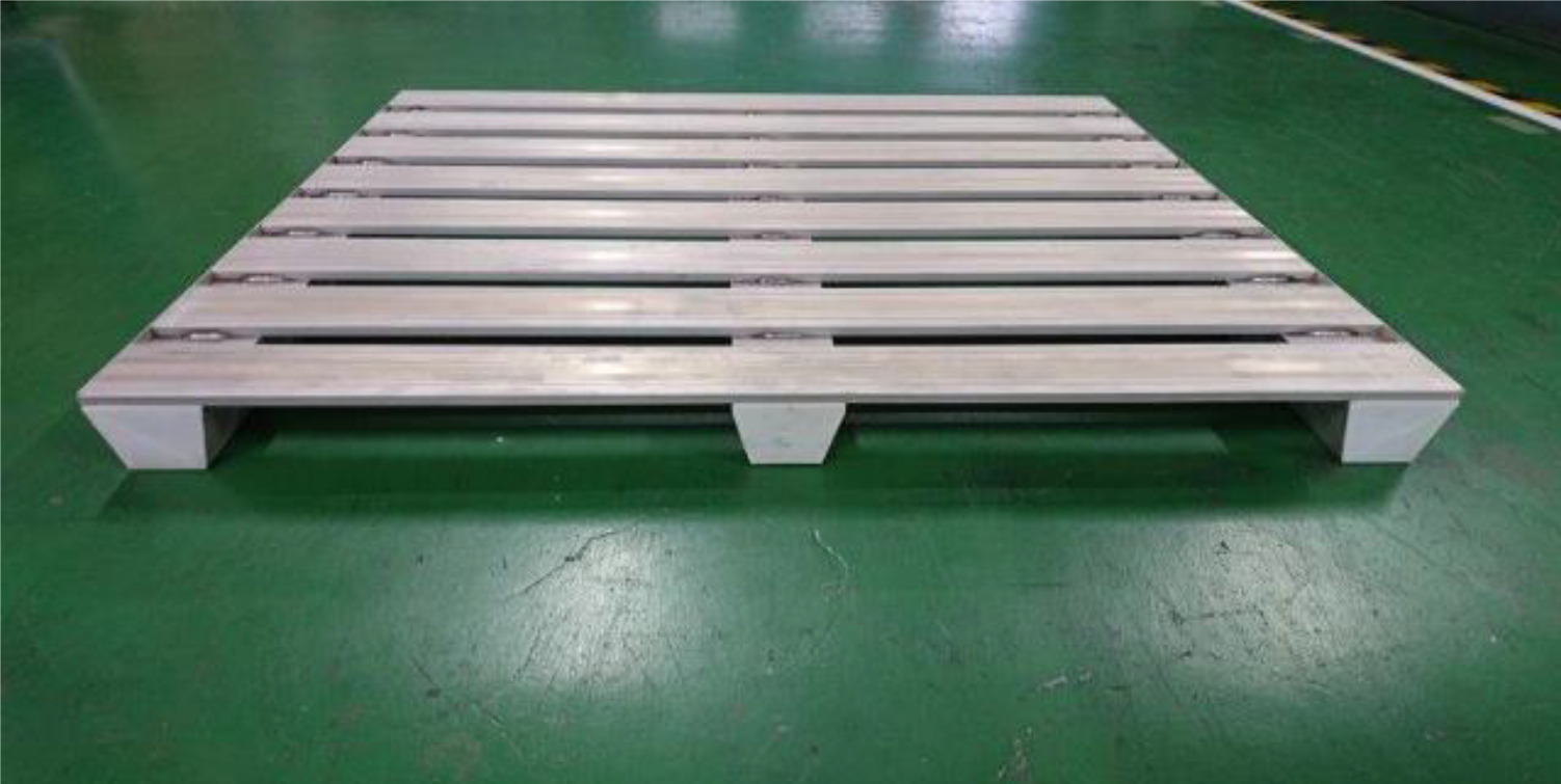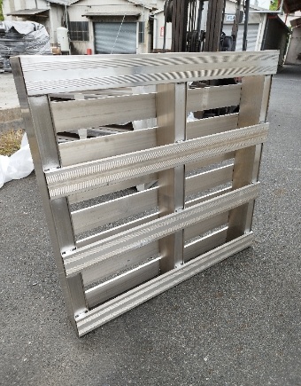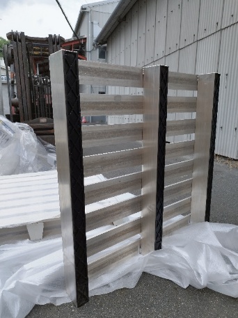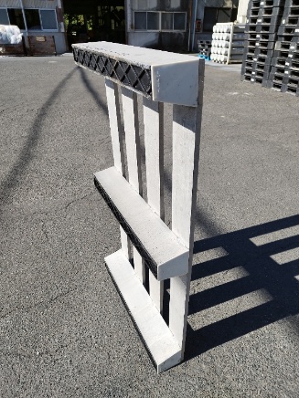 一般的に使用されている1000Kg積載パレットは社外検査機関にて JISZ0602-1988 平パレット試験(曲げ、脚部圧縮)を実施し、JISZ0605-1989金属製平パレットの基準値(現行基準)に適合しました。